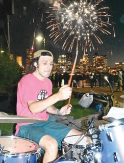 The Don’t Be Denied Band’s drummer, Kramer Gibson, rocks out during the fireworks.