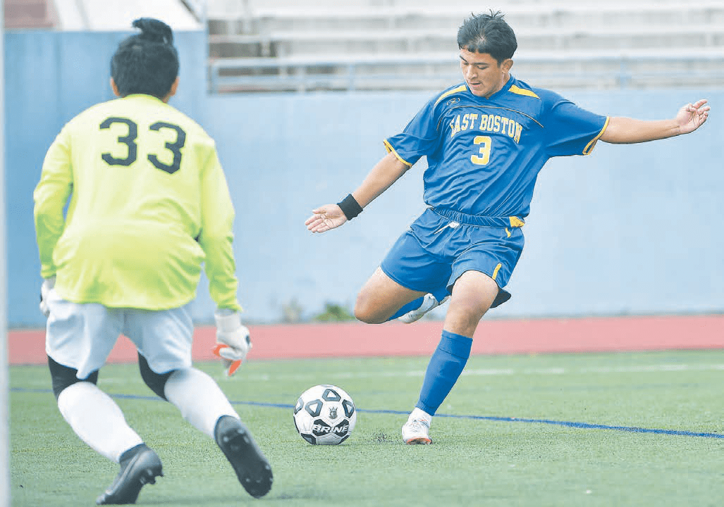News Jets Soccer Action by Times Staff • September 30, 2021 • 0 Comments ON THE MARK: Eastie’s Rogelio Gonzales winds up a kick that got past Excel goalkeeper Thanh Cong Vu to push EastBoston to a 4-0 lead during Saturday’s 8-0 win over Excel High South Boston.